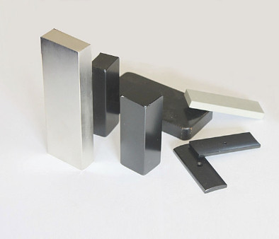 Neodymium magnets are actually composed of neodymium, iron and boron (they are also referred to as NIB or NdFeB magnets). The powdered mixture is pressed under great pressure into molds. The material is then sintered (heated under a vacuum), cooled, and then ground or sliced into the desired shape. Coatings are then applied if required. Finally, the blank magnets are magnetized by exposing them to a very powerful magnetic field in excess of 30 KOe.